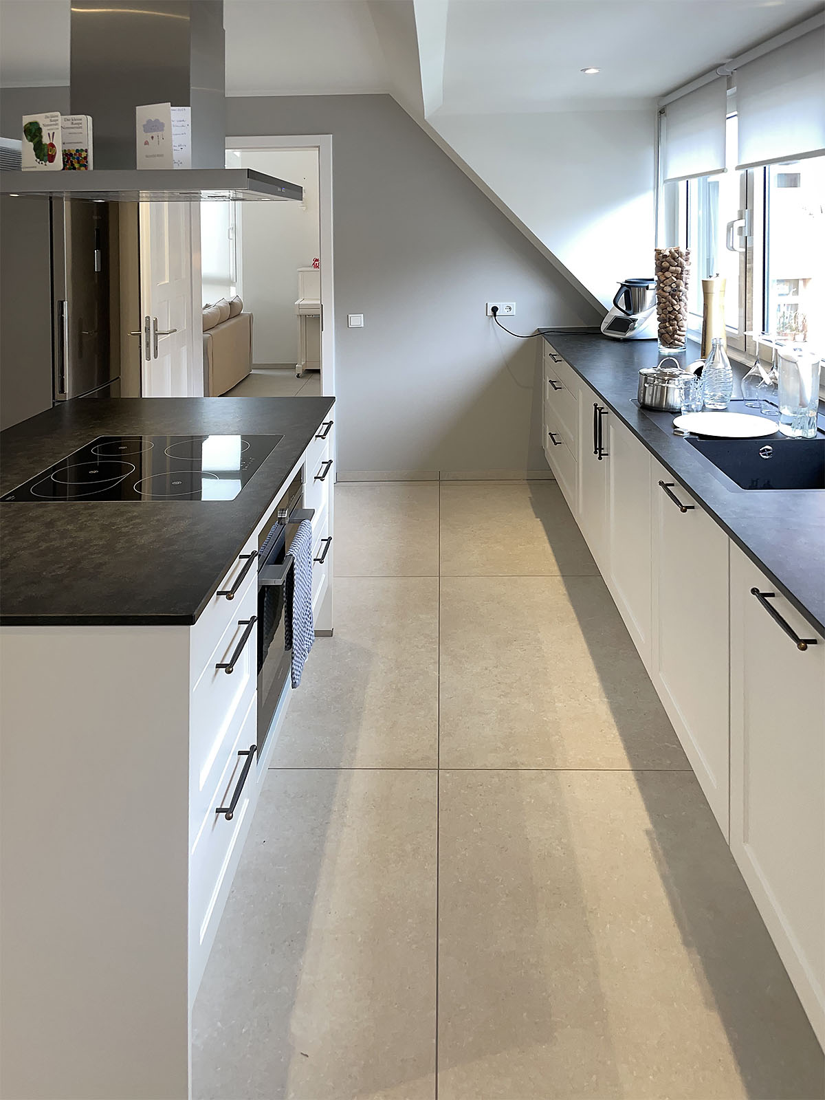 Alle Bodenbeläge mit Feinsteinzeugfliesen 120 x 120 cm