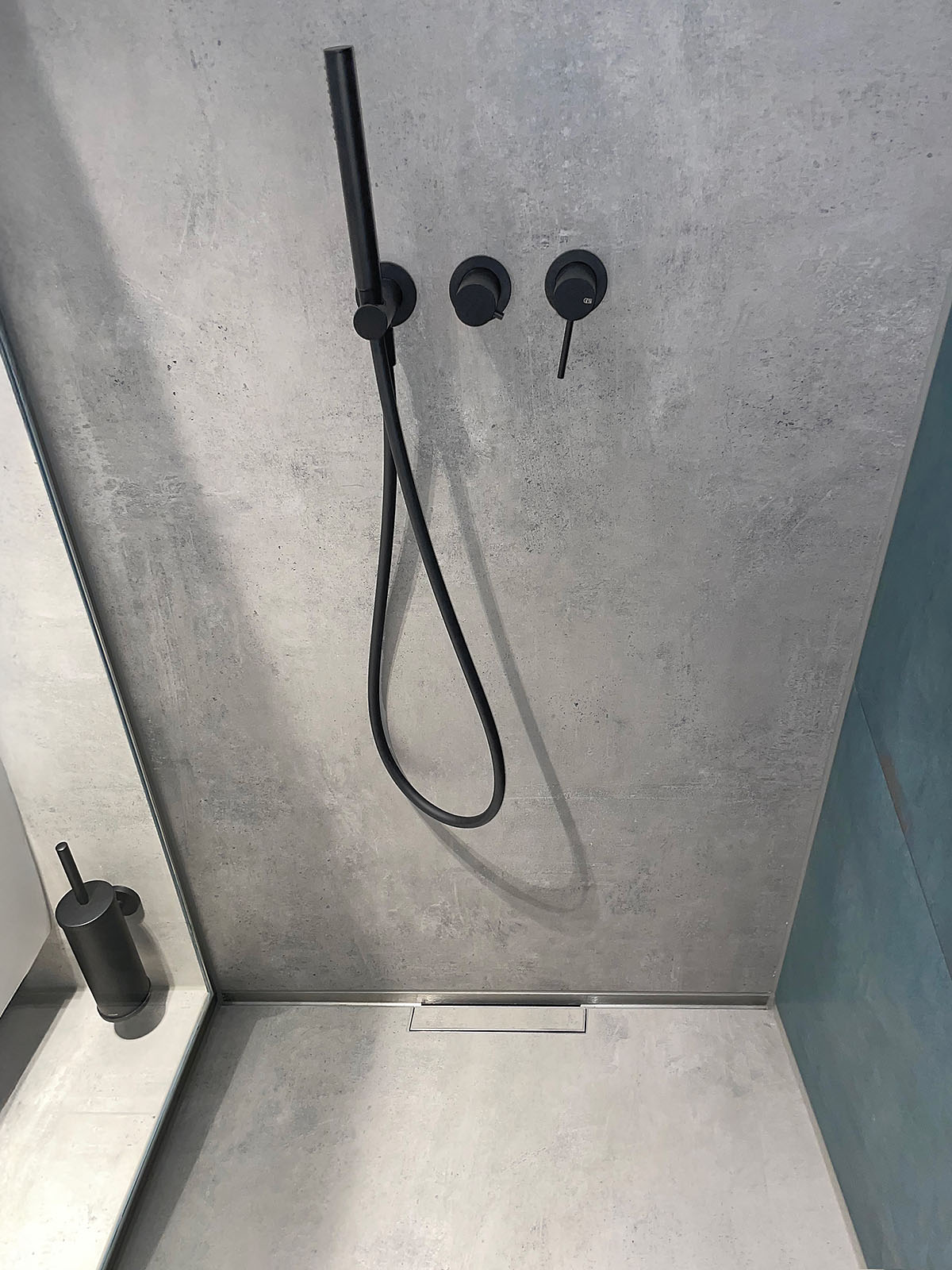 Dusch-Rückwand mit großformatigen Feinsteinzeufliesen 80 x 80 cm